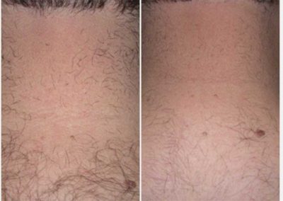 There is no downtime with our latest hair removal technology. It is common to feel a very mild sunburn-like effect the evening of the treatment but it generally subsides in a few hours. At about two weeks there will appear to be new hair growth but that is often the dead hair falling out. This hair will come out on its own accord and does not need to be plucked. With each successive treatment there will be fewer and fewer patches of hair until optimal results are achieved. Minimizing sun exposure and sun protection is always key following any laser treatment.