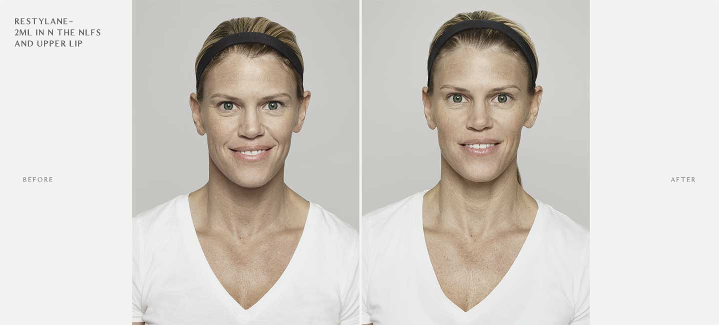 Restylane is a very effective and flexible filler. It can be used for the tear trough, to soften temples, nasolabial folds and marionette lines, for cheek augmentation, plumper, more youthful lips and even to enhance the jawline.